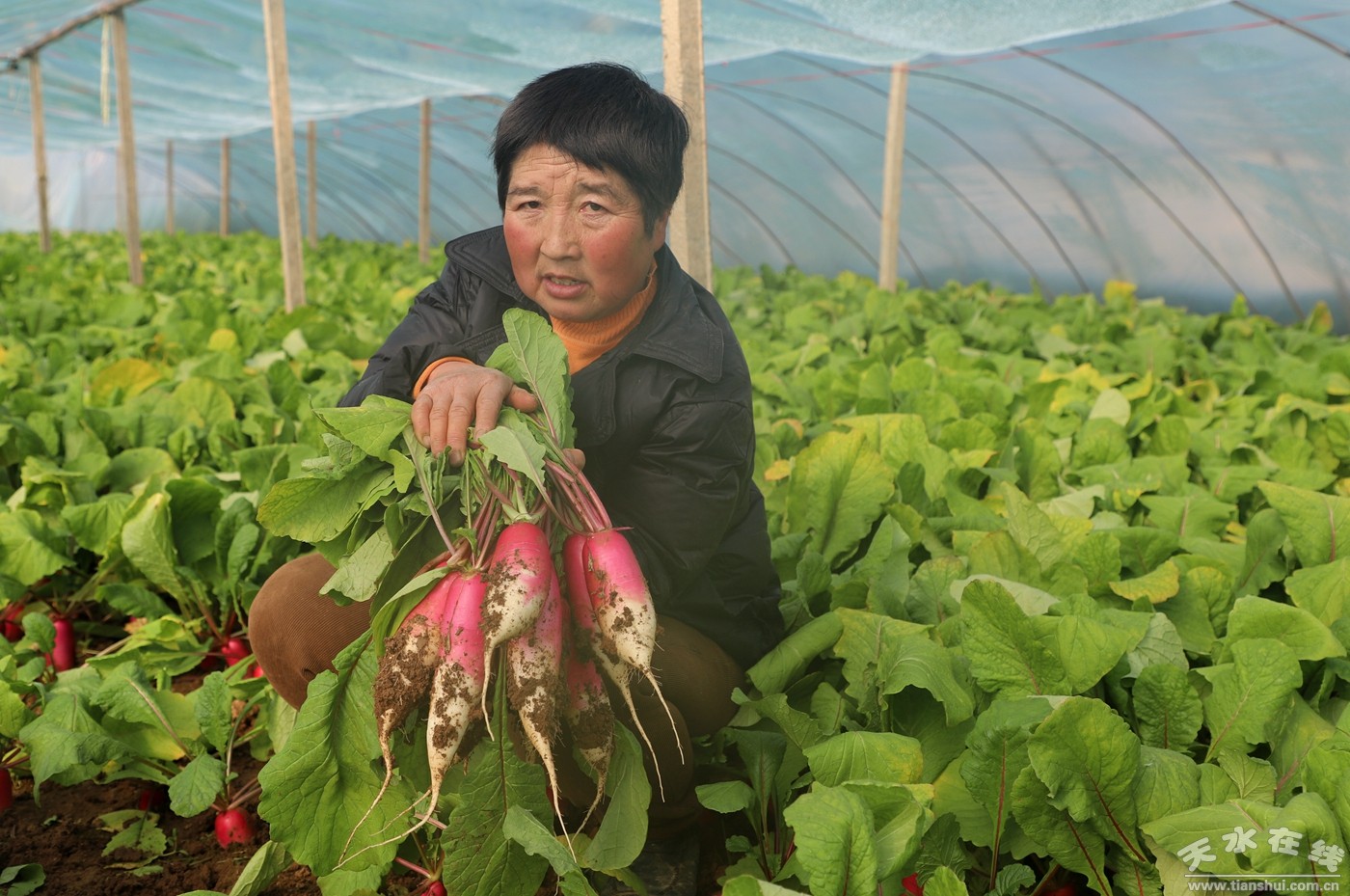“我家種植了7個大棚,現(xiàn)在水蘿卜收購價格每斤在1.5元左右,大概能收入8000元。這次蘿卜收完后就要種植黃瓜、西紅柿等蔬菜了,蔬菜種植也是我們的主要收入來源!闭诎翁}卜的新龍村村民管順琴說。