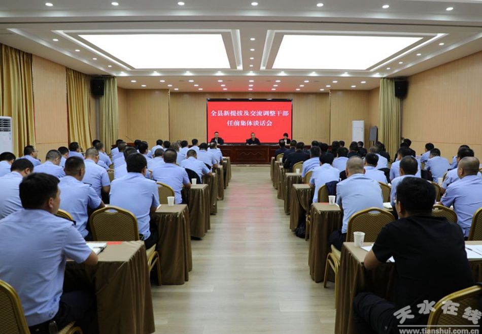 新武山訊(記者 管秋勇)8月28日,武山縣召開新提拔及交流調(diào)整干部任前集體談話會,縣委書記王新強(qiáng)出席并講話,縣委常委、組織部部長胡小云主持會議,縣委常委、紀(jì)委書記、監(jiān)委代理主任王宏出席會議。