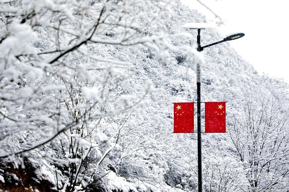 雪花紛紛揚揚,將連綿群山妝點成水墨畫卷。蒼松翠柏綴滿雪絮,山間溪流在白雪映襯下更顯清冽。古樸村落的屋頂覆上一層薄雪,紅墻黛瓦與玉樹瓊枝相映成趣,山頂古建在云霧與白雪間更顯靜謐莊重。