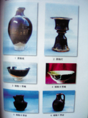在發(fā)掘中出土完整的各種西夏瓷器50多件,器類有甕、罐、碟、壺、碗、盤等;釉色有黑、白、象牙黃、綠、醬色、褐色、鐵紅色等;花紋有剔花、刻花者,多為忍冬、菊花、蓮花等。部分瓷器上也發(fā)現墨書題記,主要為姓氏,有“吳”、“崔”、“呂”等。此外,還出土大量的錢幣,有“半兩”、“五銖”、“開元通寶”、“光定元寶”、“天盛元寶”以及大量的宋代貨幣。是研究西夏社會政治、經濟、文化的珍貴實物資料。