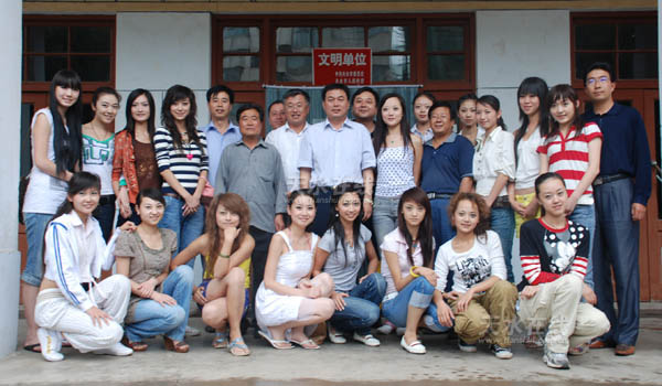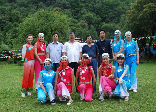 圖為張家川縣縣委組織部、宣傳部、旅游局等有關(guān)領(lǐng)導(dǎo)與身著民族服裝的“天水白娃娃”合影