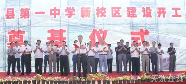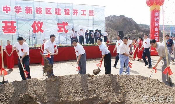 應邀出席奠基儀式的領(lǐng)導有:天水市委副書記宋敬國,市委常委、市政法委書記韓岱成,市委常委、副市長陳偉,市人大副主任申積來,市教育局副局長范俱福,天水日報社黨委副書記張榮忍,市政府辦公室副主任孫曉。參加開工典禮的還有縣四大組織領(lǐng)導、縣直有關(guān)部門及各學區(qū)(校)負責人和縣一中全體教職工。