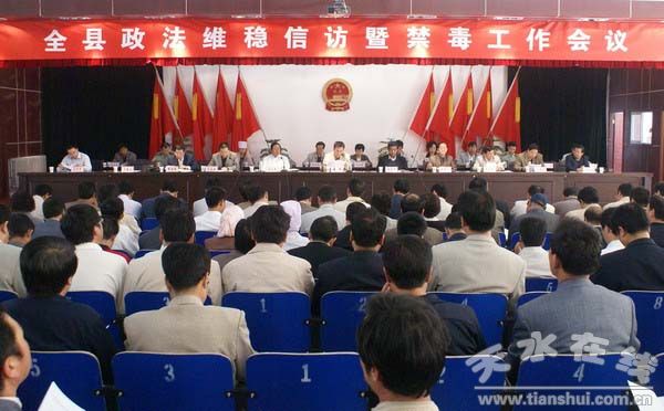 這次會(huì)議的主題是:認(rèn)真貫徹中央和省、市政法維穩(wěn)工作會(huì)議精神,正確分析全縣維穩(wěn)工作形勢(shì),安排部署今后一個(gè)時(shí)期政法維穩(wěn)工作任務(wù),進(jìn)一步動(dòng)員全縣各級(jí)組織扎實(shí)推進(jìn)矛盾糾紛排查調(diào)處和信訪工作,促進(jìn)全縣政法維穩(wěn)工作深入開(kāi)展。