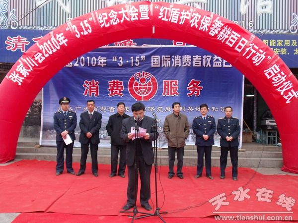 2010年3月15日,張家川縣在人民路十字舉辦了規(guī)模宏大的“3.15國際消費者權(quán)益日”宣傳慶;顒,縣委常委、常務(wù)副縣長李肖鋒,縣人大副主任王九仲,縣政協(xié)副主席馬中華和縣委宣傳部、縣文明辦、縣工商局、縣質(zhì)監(jiān)局、農(nóng)業(yè)局等15個相關(guān)部門及部分企業(yè)、個體工商戶代表應(yīng)邀參加了紀念大會。