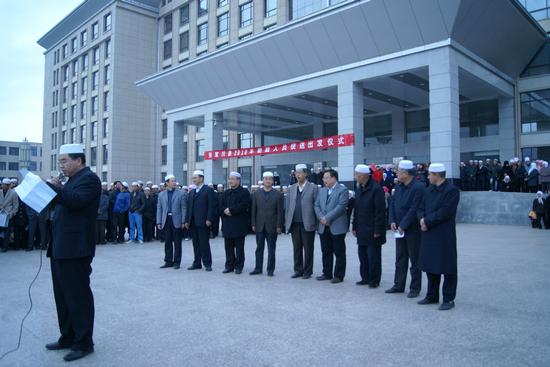 10月18日8點(diǎn),張家川回族自治縣朝覲團(tuán)由張家川啟程前往蘭州,準(zhǔn)備開(kāi)始沙特之行。張家川縣宗教局、伊斯蘭教協(xié)會(huì)為參加2010年度朝覲的人員舉行統(tǒng)送會(huì)。縣委書記劉長(zhǎng)江,縣人大主任李升平,縣委常委、宣傳部長(zhǎng)關(guān)春生,縣委常委馬利民,縣人大副主任海金武,縣政協(xié)副主席張成林出席統(tǒng)送會(huì)。