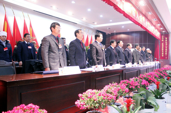 大會(huì)由執(zhí)行主席李升平主持。上午9時(shí),大會(huì)在莊嚴(yán)的國(guó)歌聲中開幕。