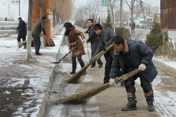 2月11日晚,張家川回族自治縣境內(nèi)普降大雪。一夜過去,厚厚的積雪鋪滿了縣城各主要干道,給行人、車輛出行造成極大不便。為貫徹落實張家川縣委十二屆二次全委(擴(kuò)大)會議暨全縣工作會議精神,樹立全縣人民講文明樹新風(fēng)的良好形象,上午十一時許,張家川縣委、縣政府組織各單位干部職工到城內(nèi)各交通主干道,清除路上積雪,為來往行人和車輛清掃出干凈、暢通的道路。