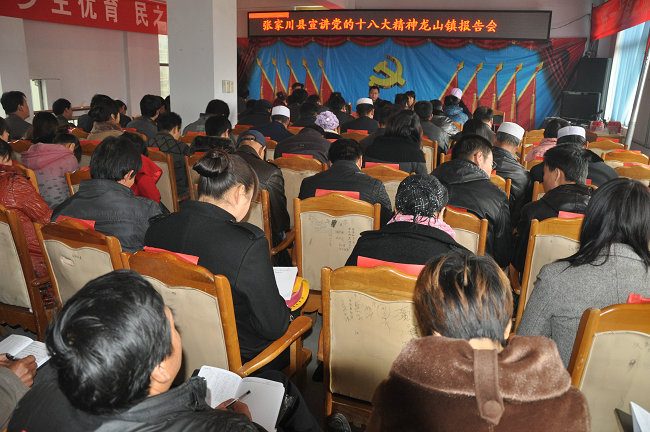 11月21日,張家川回族自治縣龍山鎮(zhèn)政府會(huì)議室內(nèi)座無(wú)虛席,掌聲陣陣。黨的十八大精神宣講在這里隆重舉行, 龍山鎮(zhèn)、村干部共計(jì)100余人聆聽(tīng)了報(bào)告。在宣講會(huì)上,縣委黨校講師劉秀琴緊密結(jié)合自身工作實(shí)際對(duì)黨的十八大精神作了全面解讀。