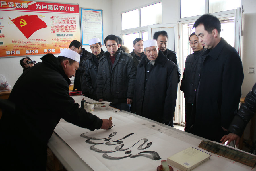 在梁山村委會(huì),縣文廣局、縣文聯(lián)組織的書畫家們?yōu)檗r(nóng)民群眾揮毫潑墨,拿著阿文書法的斜頭村民馬忠魅說,送文化下鄉(xiāng)好,平時(shí)沒有機(jī)會(huì)得到墨寶,今天我回去之后會(huì)將阿文書法裝裱好,掛在我家的上房里。