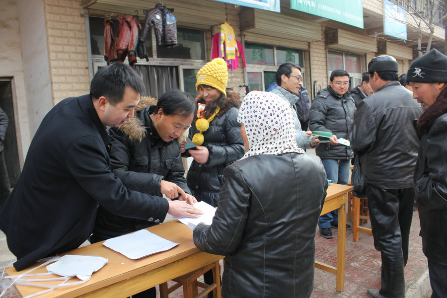 “大家慢點(diǎn),不要擠,宣傳資料每人都有份。”張家川縣委宣傳部干部白斌一邊散發(fā)著資料,一邊耐心的對(duì)前來領(lǐng)取宣傳資料的群眾解釋。1月5日,在梁山鄉(xiāng)政府所在地梁山村,前來領(lǐng)取宣傳資料的群眾把工作人員圍了個(gè)水泄不通。丹麻村90后青年惠小寶手里拿著縣勞務(wù)辦工作人員散發(fā)的務(wù)工信息宣傳頁(yè),他對(duì)記者說,回去和家里人商量一下,開春打工掙錢去。