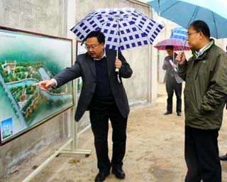 調(diào)研組冒雨參觀了張家川縣回鄉(xiāng)風(fēng)情園。張家川回鄉(xiāng)風(fēng)情園是張家川縣實(shí)施“舉特色旗,打民族牌,走富民路,建和諧縣”方略,弘揚(yáng)和傳承民族先進(jìn)文化,改善城區(qū)環(huán)境,完善城市功能,提升縣城品味,打造隴上民族特色城的一項(xiàng)重點(diǎn)工程,也是全省文化產(chǎn)業(yè)項(xiàng)目、2012年縣城建設(shè)“雙十工程”、“兩個(gè)共同”示范項(xiàng)目和2013年自治縣建縣60周年獻(xiàn)禮工程之一。園區(qū)的目標(biāo)定位是:民族的風(fēng)情園、歷史的文化園、群眾的休閑園、旅游的觀光園。調(diào)研組對(duì)張家川縣回鄉(xiāng)風(fēng)情園的建設(shè)給予了高度肯定。彭鴻嘉指出,張家川回鄉(xiāng)風(fēng)情園把伊斯蘭文化和回族精髓文化高度聚合融匯在一起,既充分體現(xiàn)了回漢聚居的民族特色,又是吸引外地游客,展示張家川新形象的一個(gè)主要窗口。要堅(jiān)定信心把回鄉(xiāng)風(fēng)情園建成展示張家川新形象的傳世工程、經(jīng)典工程。要集中各方智慧,力爭把回鄉(xiāng)風(fēng)情園文化景觀建成弘揚(yáng)伊斯蘭優(yōu)秀文化的精品力作。要奮力把回鄉(xiāng)風(fēng)情園建成自治縣六十周年的重大獻(xiàn)禮工程。
