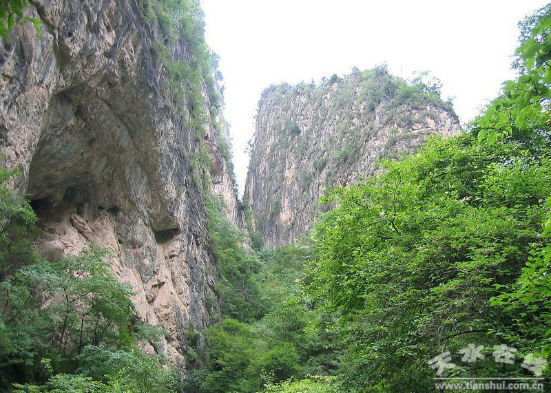 黑崖林莽在云鳳山左山腳下,兩根石柱橫谷,左右兩谷間溪水在此交匯,蜿蜒向東而去,有道可通山頂,但崎嶇難行,山路十八盤(pán),夾道林木遮天,緣山道盤(pán)旋穿林而上,尤如在洞中行走。