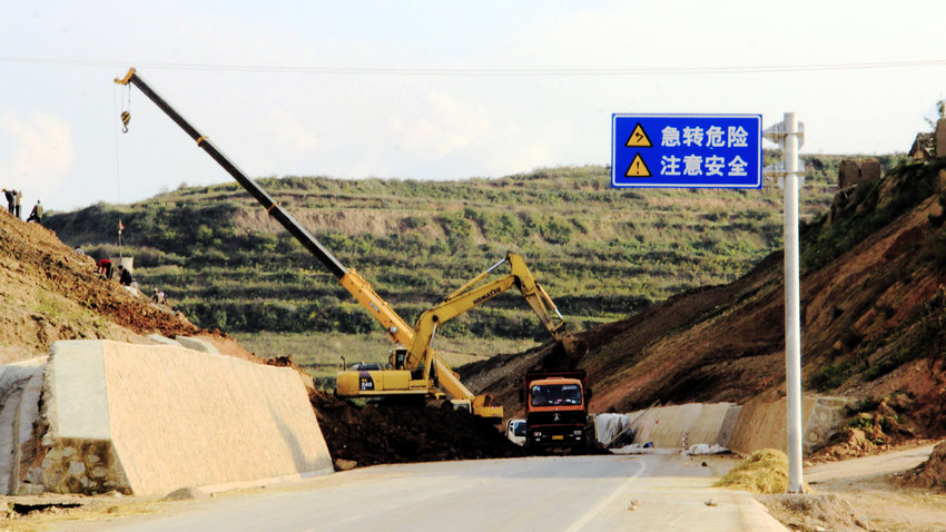 莊天二級(jí)公路張家川回族自治縣張棉驛段滑坡治理工程為張家川縣災(zāi)后重建的重點(diǎn)項(xiàng)目。該滑坡治理后將形成多級(jí)邊坡,垂直高度超過(guò)50多米,每級(jí)平臺(tái)2米。10月2日,記者在張棉驛鄉(xiāng)周家大莊看到,該路段半幅通車(chē),施工隊(duì)正在有序開(kāi)展邊坡治理工作。
