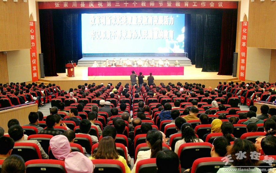 9月10日下午,張家川回族自治縣委、縣政府舉行大會(huì),隆重慶祝第三十個(gè)教師節(jié),表彰教育系統(tǒng)先進(jìn)集體和先進(jìn)個(gè)人,并向全縣廣大教師和教育工作者致以節(jié)日的問候?h委書記劉長江出席會(huì)議并講話。縣委副書記、縣長馬中奇主持會(huì)議?h政協(xié)主席關(guān)春生等四大組織在家領(lǐng)導(dǎo),各鄉(xiāng)鎮(zhèn)和縣直各部門負(fù)責(zé)人,各學(xué)區(qū)、學(xué)校校長,受表彰的教育系統(tǒng)先進(jìn)集體和優(yōu)秀教師代表,城區(qū)學(xué)校教師代表,高考受表彰學(xué)生家長參加會(huì)議。