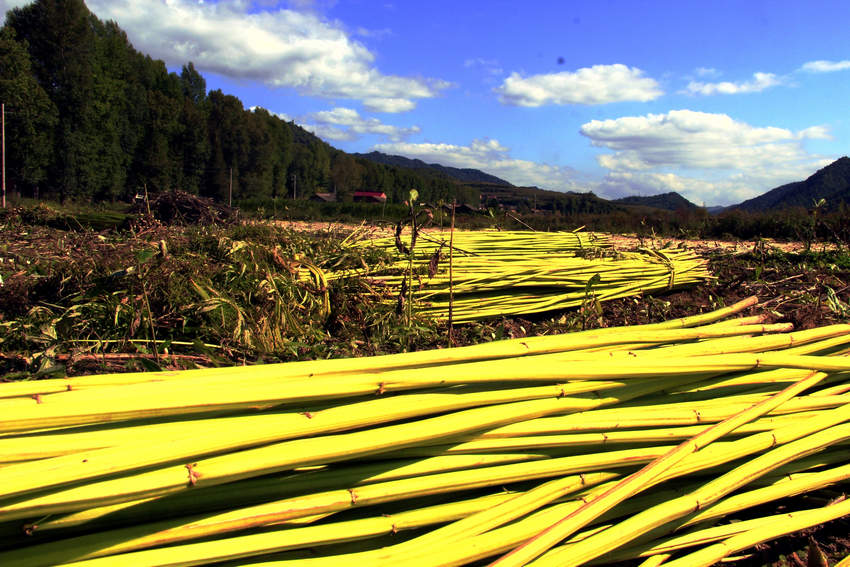 馬鹿鄉(xiāng)白楊村農(nóng)戶收割大麻