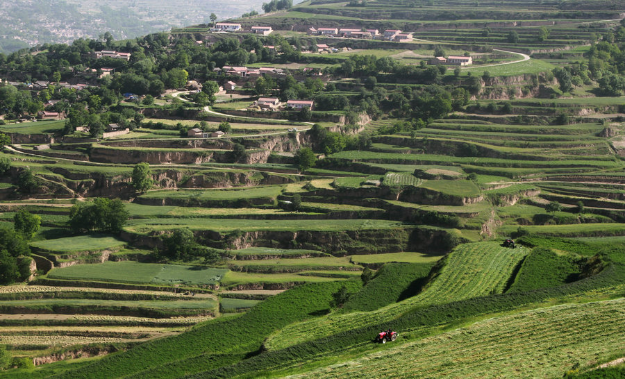 (連五鄉(xiāng)土地流轉(zhuǎn)示范點(diǎn)機(jī)械收割苜蓿)