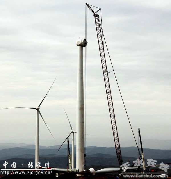 11月12日,煙雨蒙蒙,寒風(fēng)凜冽,在位于張家川縣張棉鄉(xiāng)和平安鄉(xiāng)境內(nèi)的三峽新能源張家川一期49.5兆瓦風(fēng)力發(fā)電項目施工場地,幾十名工作人員冒著風(fēng)寒,正在按照既定預(yù)案配合千噸主吊,安裝風(fēng)機(jī)的塔筒、機(jī)艙、葉片,一步步按部就班,一絲不茍。隨著現(xiàn)場的一片歡呼,“又是一臺風(fēng)機(jī)吊裝成功了!痹擁椖炕毓こ滩拷(jīng)理高興地說。