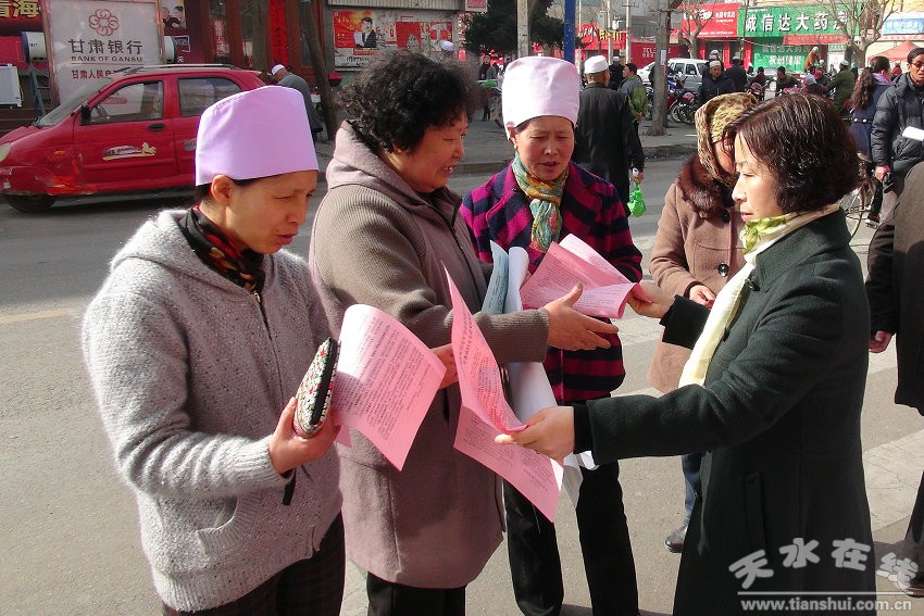 正值慶!叭恕眿D女節(jié)和《反家庭暴力法》正式實施,以及紀(jì)念《公證法》頒布實施十周年之際,為了廣泛深入開展《反家庭暴力法》和《公證法》宣傳教育,積極引導(dǎo)婦女兒童和人民群眾增強依法維護自身合法權(quán)益的意識和能力,進一步推動法治張家川縣建設(shè)。3月8日上午,由張家川縣司法局牽頭,協(xié)調(diào)組織張家川縣婦聯(lián)、張家川縣公證處、甘肅乾鑫律師事務(wù)所和甘肅銀行等職能單位,積極落實“誰執(zhí)法誰普法”的原則,抽調(diào)律師、公證員、普法聯(lián)絡(luò)員和普法宣傳人員共計20余人,利用縣城逢集日,在人流較密集地——人民路十字,開展建設(shè)法制張家川巾幗在行動“三八”維權(quán)周和紀(jì)念《公證法》頒布實施十周年普法宣傳活動。與此同時,紀(jì)念《公證法》頒布實施十周年上街集中宣傳教育活動在縣域內(nèi)掀起了高潮。