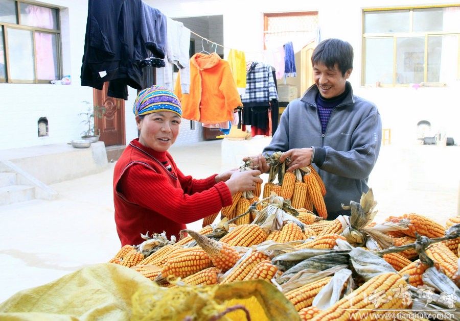 ▲11月19日,王麻和妻子王杏曼整理院子里碼放的玉米