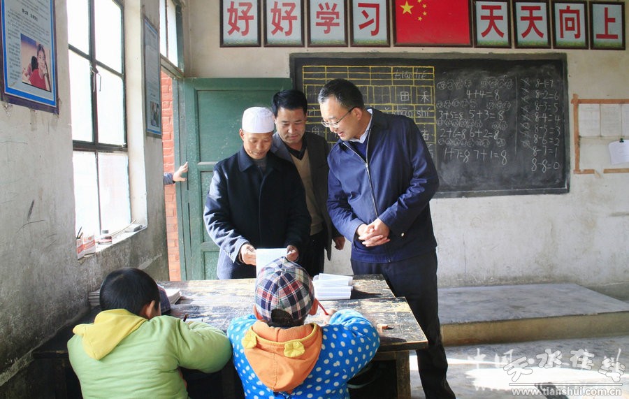 毛磨村教學(xué)點,1位老師,9個學(xué)生。教了村里兩代人的老師馬守忠讓這所復(fù)式教學(xué)的小學(xué)校成為全村的希望,事跡令人感動,精神令人鼓舞。在這里,薛林榮與馬守忠交談了許久。如何破解全縣農(nóng)村地區(qū)特別是偏遠(yuǎn)貧困村教學(xué)點引不來教師、穩(wěn)不住教師、長期缺人的局面;如何讓全縣教學(xué)點的教師們留得安心暖心;如何讓部分鄉(xiāng)村教師群體走出物質(zhì)與精神的雙重困境;怎么做到農(nóng)村教學(xué)點布局合理、完善標(biāo)準(zhǔn)、配齊資源、開齊課程、保證質(zhì)量,使全縣條件最差的村子基礎(chǔ)最薄弱的教學(xué)點達(dá)到基本的辦學(xué)標(biāo)準(zhǔn),薛林榮聽了馬守忠的許多心里話。