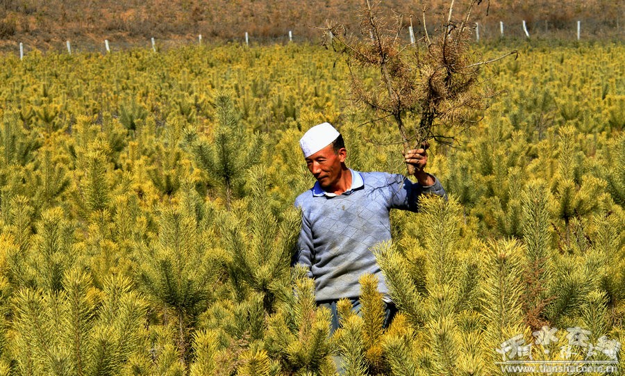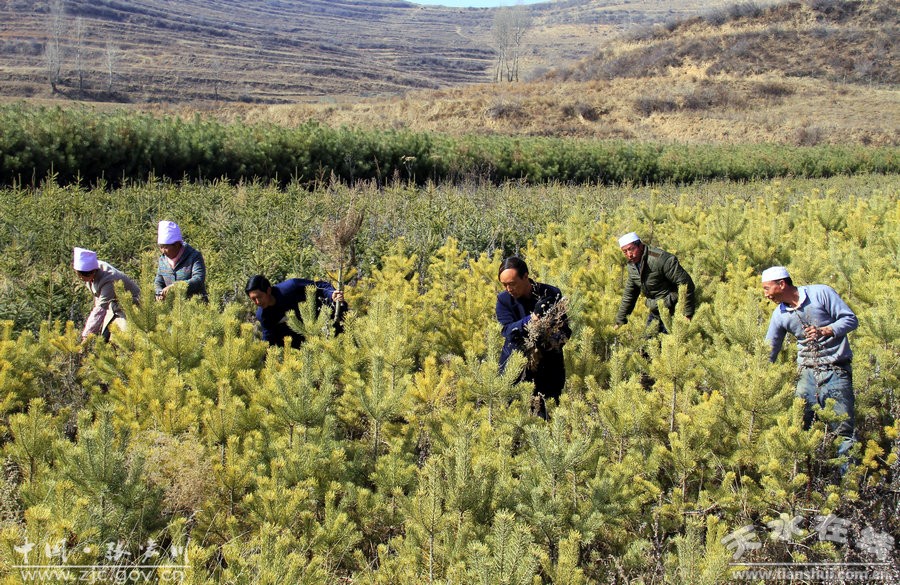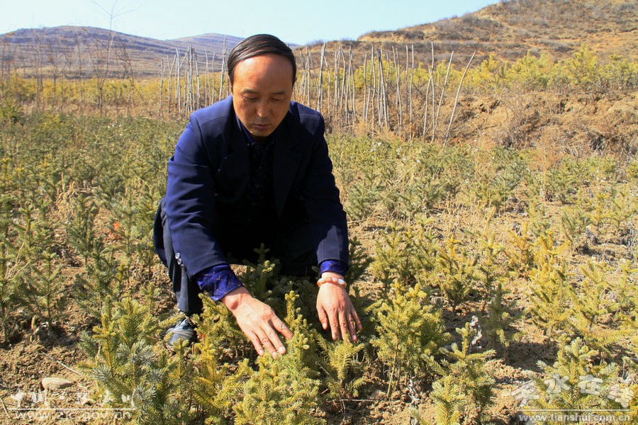 2月16日,陽光明媚,春風和煦。筆者趕往張家川縣馬鹿鎮(zhèn)大灘村采訪。在大灘村啟隆苗木合作社的苗圃基地里,雖然積雪尚未完全消融,但是村黨支部書記何玉龍和村民們卻忙的不亦樂乎!斑@150多畝的油松、樟子松、云杉,可是村上50多戶人的寶貝疙瘩,不隔三差五的到苗圃基地里鋤草、拔病苗、看長勢,我這個村書記心里不踏實!痹诿缙曰,何玉龍一邊忙著勞動一邊打著招呼。