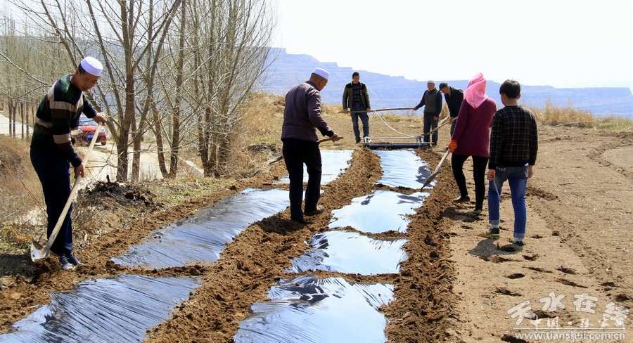 4月4日劉堡鎮(zhèn)窯兒村群眾耕地覆膜準(zhǔn)備栽植烏龍頭樹(shù)苗