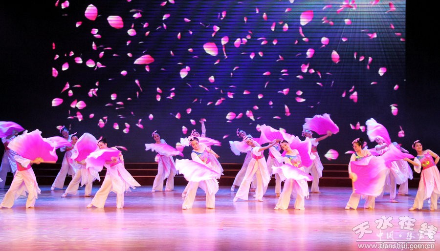 舞蹈《母親是中華》拉開整場演出的序幕。在震撼的樂曲聲中,演員婀娜多姿的身影與激情四射的舞臺燈光相互交織,一場精彩唯美的文化歌舞盛典正式上演。演出現(xiàn)場,通過視覺、聽覺等多重感官享受,為外來賓客和張家川縣人民帶來了一場極具本土風(fēng)情的文化視聽盛宴。合唱《關(guān)山浩歌》《最美還是張家川》,舞蹈《花兒與少年隨想》《又見花開》充分展現(xiàn)了張家川人民熱愛生活、奮力建設(shè)家鄉(xiāng)的新時代風(fēng)采。舞蹈《我的夢娃我的夢》《閃爍的紅心》表現(xiàn)了張家川縣少年兒童一顆紅心忠于黨的堅定信念和對社會主義核心價值觀的深刻解讀與弘揚(yáng)。張家川縣民間藝人表演的原生態(tài)花兒對唱,將整場文藝演出推向了高潮,一浪接著一浪的花兒歌聲,引得現(xiàn)場觀眾掌聲陣陣,大家紛紛舉起手中的相機(jī)、手機(jī)拍照、錄視頻,記錄下這震撼心靈的一幕。歌舞《我們的中國夢》緊扣時代主題,唱出了張家川縣三十三萬人民的心聲。最后,在甘肅省歌舞團(tuán)演員王曉艷的領(lǐng)唱下,全體演出人員上臺合唱《愛我中華》,激蕩高昂的歌聲回響在整個演播大廳,為整場文藝演出畫上了圓滿的句號。