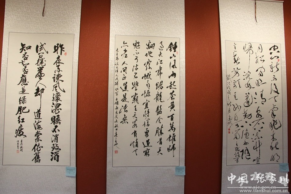 據(jù)悉,此次書畫展由縣委宣傳部主辦,縣文廣局、縣文聯(lián)承辦,經(jīng)過認(rèn)真評選,共展出作品110余件,作品或大筆寫意、酣暢淋漓,或置陣布勢、臨見妙哉,或傳承創(chuàng)新、相得益彰。一幅幅作品以書言志、以畫傳情,生動(dòng)體現(xiàn)了40年來張家川建設(shè)發(fā)展取得的巨大成就,展現(xiàn)了新時(shí)代張家川的風(fēng)貌、豐富多彩的群眾文化生活和人民積極向上的精神風(fēng)貌,反映了全縣各族干部群眾深入學(xué)習(xí)貫徹習(xí)近平新時(shí)代中國特色社會(huì)主義思想和黨的十九大精神,樹牢“四個(gè)意識”、堅(jiān)定“四個(gè)自信”、做到“兩個(gè)維護(hù)”,同心同行、拼搏進(jìn)取,奮力建成小康社會(huì)的信心和決心。