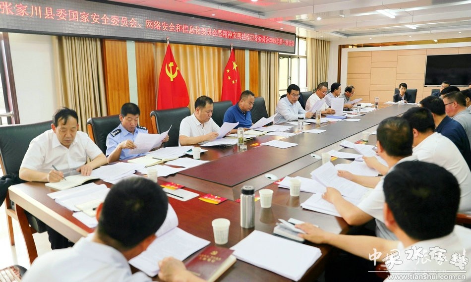 7月12日下午,縣委書記陳晰主持召開張家川縣委國(guó)家安全委員會(huì)、網(wǎng)絡(luò)安全和信息化委員會(huì)暨精神文明建設(shè)指導(dǎo)委員會(huì)2019年第一次會(huì)議,傳達(dá)學(xué)習(xí)習(xí)近平總書記在十九屆中央國(guó)家安全委員會(huì)第一次會(huì)議上的重要講話以及省市有關(guān)會(huì)議精神,審議縣委國(guó)家安全委員會(huì)、縣委網(wǎng)絡(luò)安全和信息化委員會(huì)相關(guān)工作規(guī)則、細(xì)則、辦法和意見以及國(guó)家安全宣傳教育活動(dòng)方案、創(chuàng)建省級(jí)文明縣實(shí)施方案等文件,安排部署當(dāng)前及下階段重點(diǎn)工作任務(wù)?h委國(guó)家安全委員會(huì)、網(wǎng)絡(luò)安全和信息化委員會(huì)、精神文明建設(shè)指導(dǎo)委員會(huì)全體成員以及縣直相關(guān)單位負(fù)責(zé)同志參加會(huì)議。