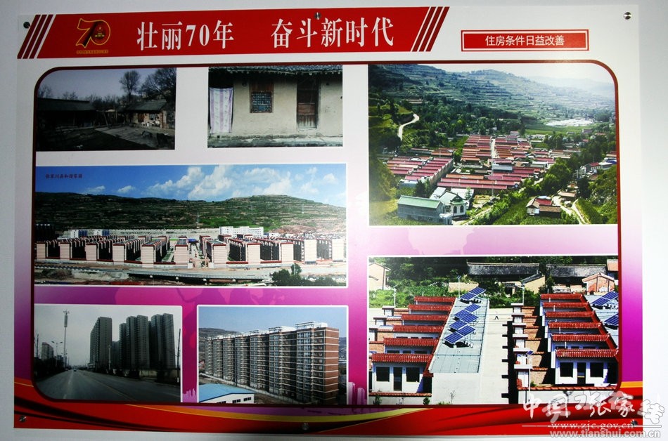 此次圖片展分為7個展區(qū)、70個版面,較為全面地展現(xiàn)了中華人民共和國成立70年來,張家川縣在政治、經(jīng)濟、社會、文化、生態(tài)文明等方面取得的輝煌成就與人民群眾生活的可喜變化。
