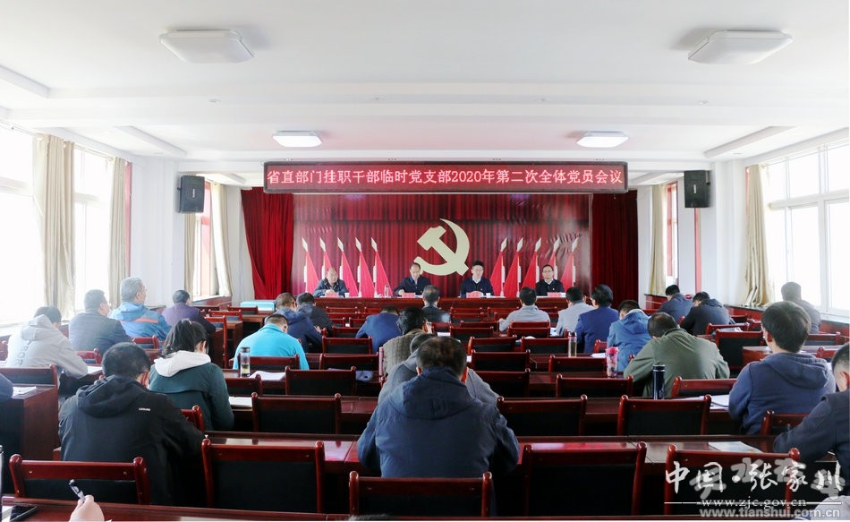 4月24日,張家川縣召開省直部門掛職干部臨時黨支部2020年第二次全體黨員會議,傳達學習4月17日中共中央政治局會議,全省、全市脫貧攻堅幫扶工作推進會議精神;學習《張家川縣中央脫貧攻堅專項巡視“回頭看”和2019年度國家脫貧攻堅成效考核反饋意見整改實施方案》。