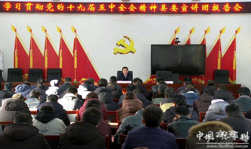12月21日,張家川縣人大常委會主任李肖鋒深入梁山鎮(zhèn)宣講黨的十九屆五中全會精神。梁山鎮(zhèn)全體干部職工、部分人大代表、駐村第一書記、各村黨組織書記、黨員代表參加宣講會。