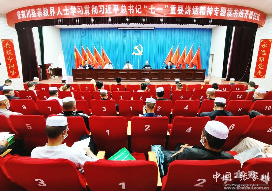 為在全縣宗教界迅速掀起學習宣傳貫徹習近平總書記在慶祝中國共產(chǎn)黨成立100周年大會上重要講話精神的熱潮,進一步堅定全縣廣大宗教界人士擁護黨的領(lǐng)導、堅定走中國特色社會主義道路的信心和決心,按照縣委的統(tǒng)一部署,7月17日至18日,張家川縣宗教界人士學習貫徹習近平總書記“七一”重要講話精神專題讀書班在縣委黨校開班。全縣各鄉(xiāng)鎮(zhèn)負責人,縣伊協(xié)、佛協(xié)、道協(xié)負責人,全縣伊斯蘭教、佛教、道教代表人士及寺管人員近120人參加了培訓。