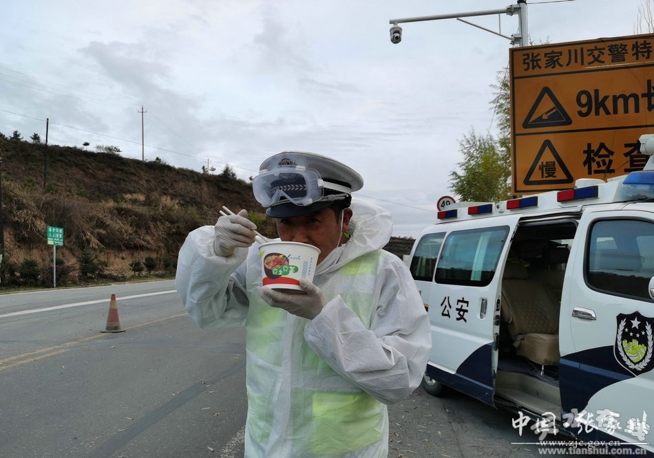 11月3日,夜幕還未降臨,但張家川縣張棉驛疫情防控監(jiān)測點(diǎn)的氣溫卻已經(jīng)降到了個位數(shù),空曠的公路上不時有冷風(fēng)吹來,已經(jīng)在崗位上堅(jiān)守了一天的交警李江龍,趁著吃飯的間隙,才想起來給妻子打個電話報(bào)個平安、關(guān)懷一下。電話打通,只是匆忙的說了幾句話,便掛斷了。