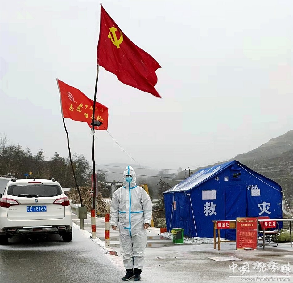 雪再大,風再寒,也沒能擋住平安鄉(xiāng)黨員干部抗擊疫情的信心和決心。守住崗位就是守住了群眾的安全,該鄉(xiāng)各村疫情監(jiān)測點上的黨員干部、志愿者,頂著嚴寒,在風雪中堅守。在新莊村的疫情監(jiān)測點上,鮮紅的黨旗在白雪的映襯下顯得格外醒目。高山上的溫度已經(jīng)達到零下十攝氏度以下,路口的帳篷都已經(jīng)凍得嘎嘎作響,在該村監(jiān)測點,村黨支部書記汪亞梅和村黨支部副書記高雙元、村主任李汪杰依然堅守在風雪中。汪亞梅一邊搓著凍得通紅的手,一邊告訴記者,“監(jiān)測點上不敢離人,冷一點沒啥,把進村出村的人員登記好,查驗好,不要出現(xiàn)什么遺漏,凍點沒事的!