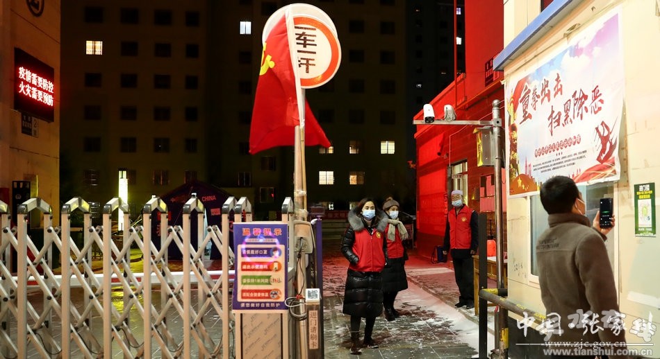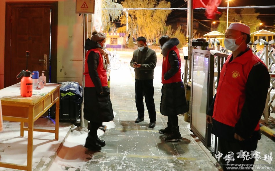 晚上,記者在張家川縣走訪看到:在這樣的天氣條件下,縣城各個小區(qū)門口、檢查執(zhí)勤點(diǎn),有這樣一群人,他們依然堅(jiān)守在卡口,雖然手凍麻了、腿凍僵了,但他們片刻不懈怠,一刻不放松,依然值守在抗疫防疫的第一線,用熱血與擔(dān)當(dāng)筑牢抗疫防線,成為雪中最美的人。
