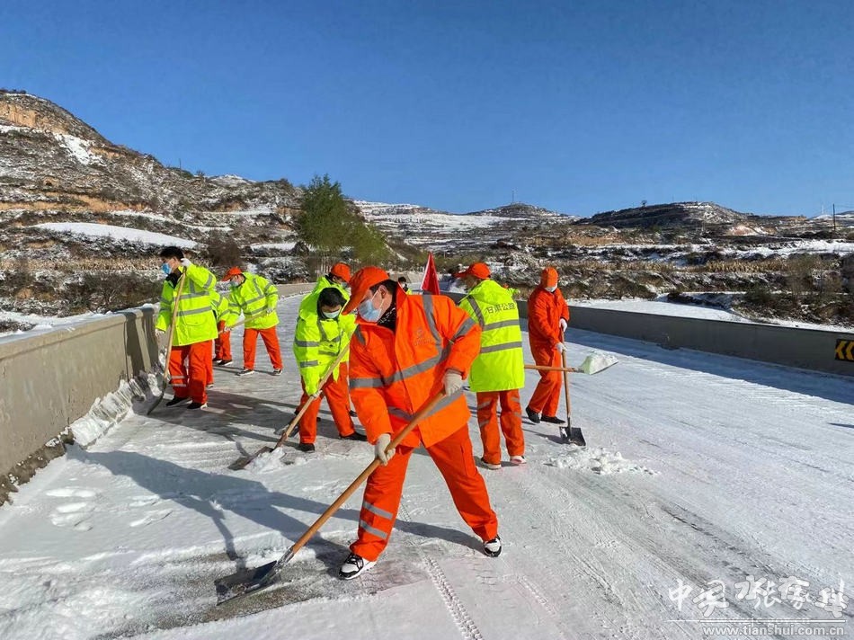 在G566線西天路張棉驛至劉堡段、S221線堡山段等急灣陡坡路段和張棉驛隧道進(jìn)出口、橋梁等重點(diǎn)路段撒布環(huán)保融雪劑和防滑料,加快冰雪融化的速度,增大路面的摩擦系數(shù),保障道路安全暢通,切實(shí)將寒潮天氣給防疫和生活物資的運(yùn)輸帶來(lái)的不利影響降為最小。