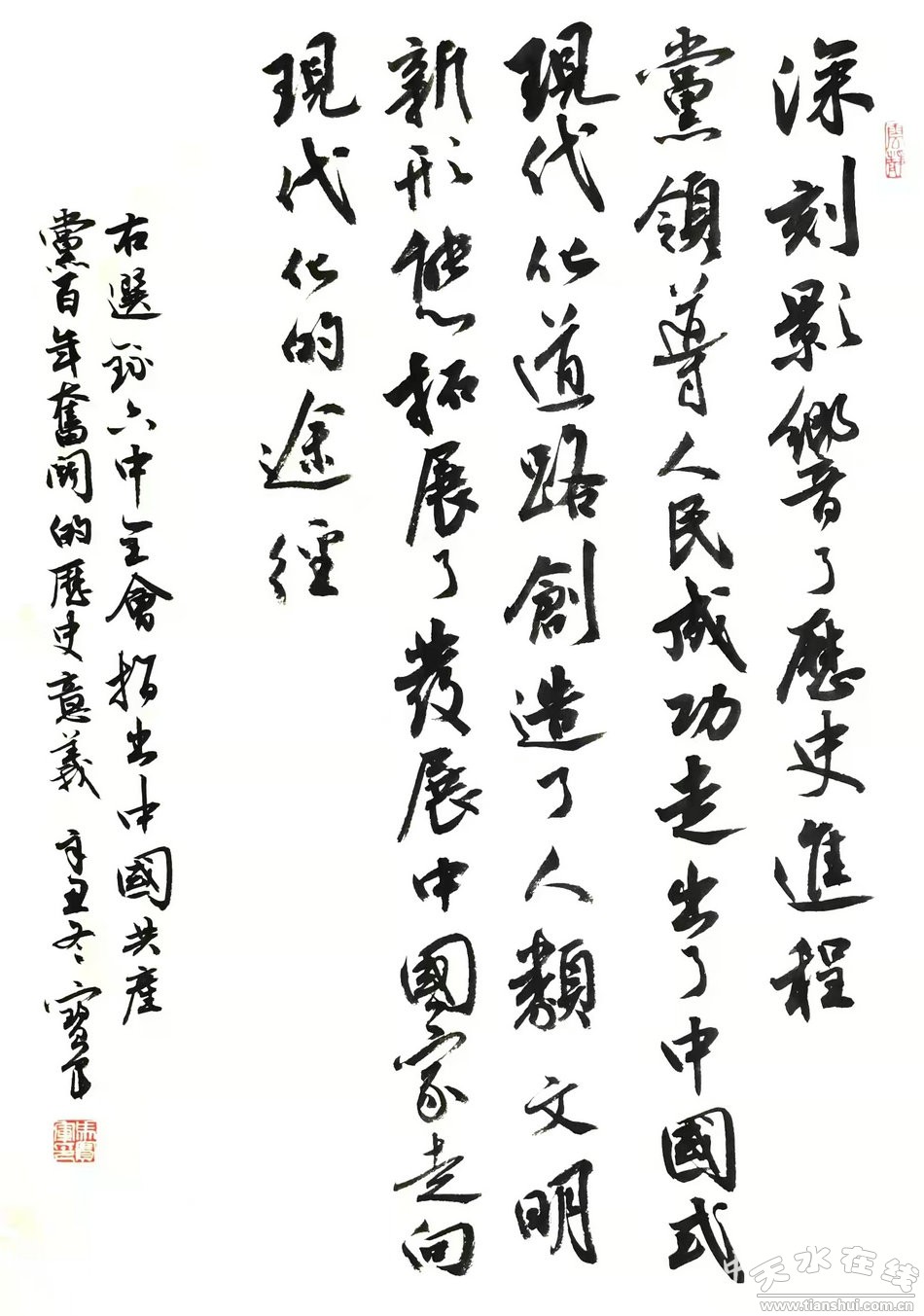 為深入學(xué)習貫徹黨的十九屆六中全會精神,全面系統(tǒng)學(xué)習領(lǐng)會全會精神的豐富內(nèi)涵與核心要義,牢牢把握正確方向?qū),全面展現(xiàn)黨的百年奮斗重大成就和歷史經(jīng)驗,張家川縣新時代文明實踐文藝志愿者為宣傳和闡釋黨的十九屆六中全會精神,精心創(chuàng)作出一系列文藝書畫作品,進一步豐富活躍群眾文化生活。