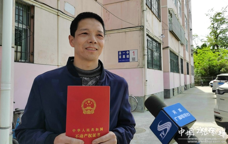 “我入住老一中家屬樓已經(jīng)17年了,今天終于拿到了房產(chǎn)證!”在張家川縣原一中家屬樓,居民王萬東拿到不動產(chǎn)權(quán)證后難掩激動的心情。