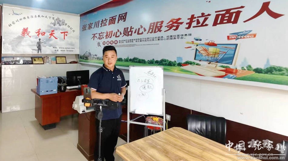 王金龍畢業(yè)后,選擇自己創(chuàng)業(yè)。他先后走訪北京、武漢等餐飲市場,通過調(diào)查和分析后,從2016年開始,申請注冊了“張家川拉面網(wǎng)”,成立縣義和天下商務(wù)服務(wù)有限公司,取得了“熙穆源”商標(biāo),借助抖音、快手等新媒體平臺,推介宣傳張家川縣餐飲服務(wù)業(yè)、電子商務(wù)服務(wù)、勞務(wù)信息、土特產(chǎn)品與食品銷售等,讓更多的外地人了解張家川,關(guān)注張家川發(fā)展。