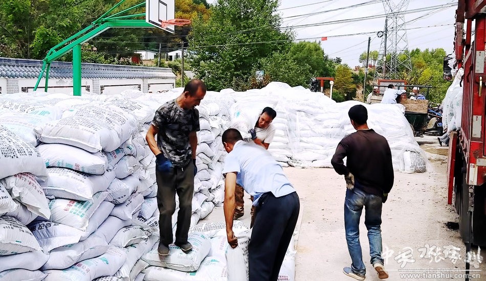 在恭門鎮(zhèn)海河村村委會(huì)院內(nèi),村民們正在裝卸有機(jī)肥。土壤改良是高標(biāo)準(zhǔn)農(nóng)田建設(shè)的主要內(nèi)容,有機(jī)肥增加土壤有機(jī)質(zhì)含量,改良土壤結(jié)構(gòu),提升土壤肥力。