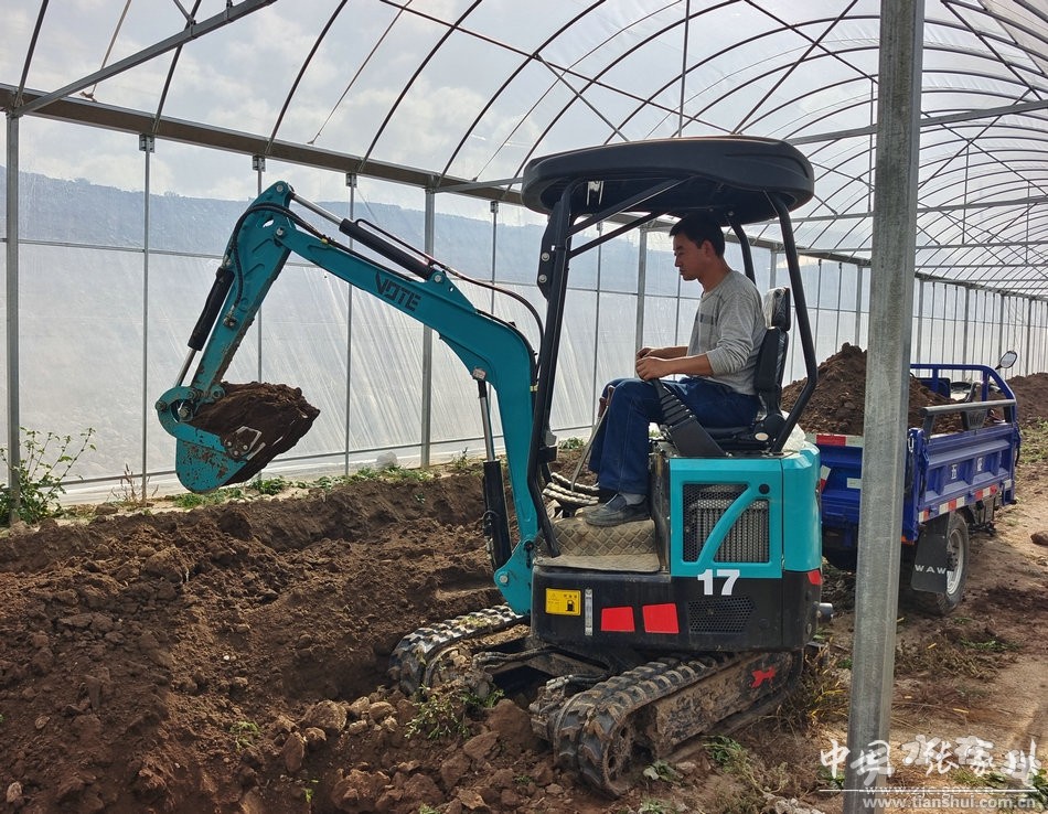 位于半山腰的現(xiàn)代農(nóng)業(yè)科技產(chǎn)業(yè)園,一座座鋼架大棚鱗次櫛比,在陽光下閃閃發(fā)光。平整好的空地上,水泥罐車來回穿梭,經(jīng)工人引導(dǎo)準(zhǔn)確將混凝土灌入預(yù)建大棚的預(yù)埋件里。主體完工的連座大棚里,公司負(fù)責(zé)人楊建剛開著小型挖掘機(jī)開溝,工人們將發(fā)酵好的玉米秸稈均勻地鏟入已開好的溝內(nèi)。