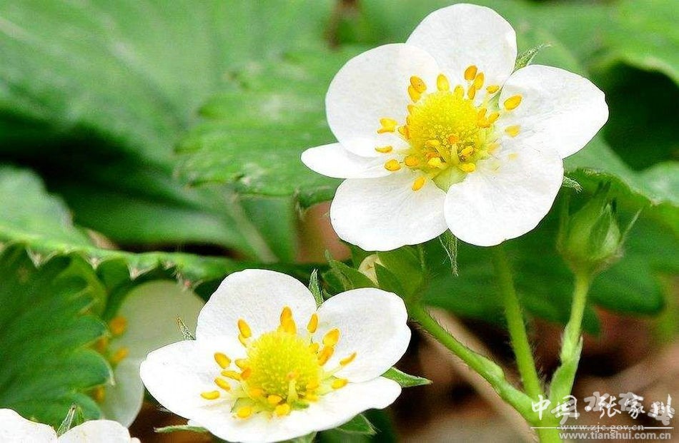 玻璃溫室里,草莓苗老葉包裹著新芽,與十月份生長情況相比,植株更加蓬勃。一棵棵草莓苗已經開出了一朵朵可愛的白花,白色的花兒在幾片綠葉的簇擁下,含著幾分笑意,幾分嬌羞,有些已經長出了小草莓。遠遠望去,草莓棚里一片春意盎然。