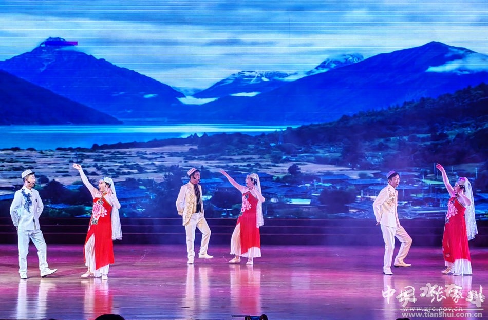 晚會在歌舞《歡樂時光》中拉開帷幕,歌曲《美麗的張家川》告訴人們這里有一片神奇的土地,這里有可親可敬的人民,這里有日新月異的發(fā)展,這里有賡續(xù)傳承的文化。張家川花兒作為土生土長的民間藝術(shù),也是我縣唯一的一項國家級非物質(zhì)文化遺產(chǎn)代表性項目名錄,《關(guān)山頂上的姊妹花》就是一首極具代表性的原生態(tài)花兒。傳統(tǒng)的《梨園鬧新春》《變臉》、民族聯(lián)舞《和諧盛世》、回族舞蹈《太陽出來喜洋洋》等節(jié)目把晚會推向了高潮。曲藝《一川碧水潤阿陽》反映了張家川縣治水興縣惠民生,人水和諧譜新篇的發(fā)展新畫卷。歌舞《春風(fēng)十萬里》《領(lǐng)航》反映了偉大時代給平凡的生活帶來的無限希望和幸福感。