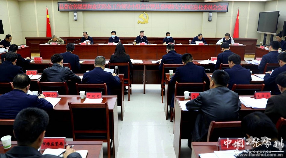 近日,縣委書(shū)記張思佳主持召開(kāi)縣委宣傳思想和意識(shí)形態(tài)工作領(lǐng)導(dǎo)小組會(huì)議暨網(wǎng)絡(luò)安全和信息化委員會(huì)會(huì)議,傳達(dá)學(xué)習(xí)全國(guó)、全省、全市相關(guān)會(huì)議文件精神,審定《2023年全縣意識(shí)形態(tài)重點(diǎn)工作任務(wù)清單》《2023年全縣網(wǎng)信工作要點(diǎn)》《張家川縣網(wǎng)絡(luò)生態(tài)環(huán)境治理工作方案》,安排部署當(dāng)前和今后一個(gè)時(shí)期重點(diǎn)工作任務(wù)。縣委宣傳思想和意識(shí)形態(tài)工作領(lǐng)導(dǎo)小組副組長(zhǎng)、縣委網(wǎng)絡(luò)安全和信息化委員會(huì)副主任,各成員單位主要負(fù)責(zé)同志參加會(huì)議。