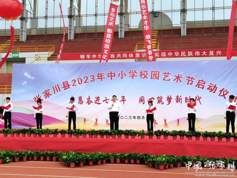 為喜迎70周年縣慶,表達(dá)對祖國的無限熱愛,豐富校園藝術(shù)文化生活,促進(jìn)學(xué)生全面發(fā)展。4月27日,張家川縣2023年中小學(xué)校園藝術(shù)節(jié)啟動儀式在縣體育中心舉行。副縣長馬少雄出席儀式并宣布藝術(shù)節(jié)啟動,縣教育局負(fù)責(zé)人主持儀式。