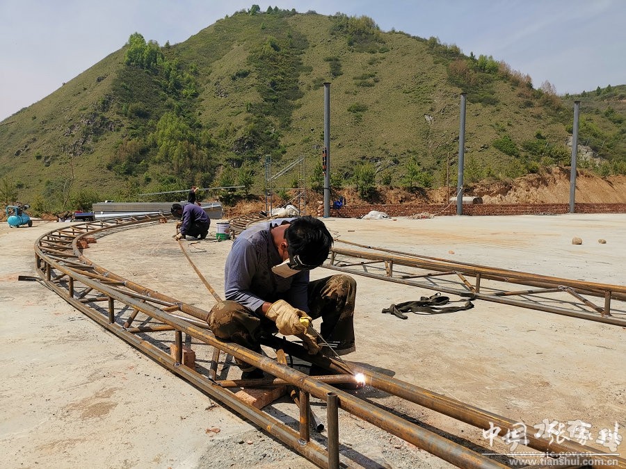 近日,記者走進(jìn)天河村無(wú)公害蛋雞養(yǎng)殖基地,在一處半山腰上的寬闊地內(nèi),工人師傅們正在緊張施工,電焊工手握焊槍瞄準(zhǔn)焊點(diǎn)焊光閃爍。