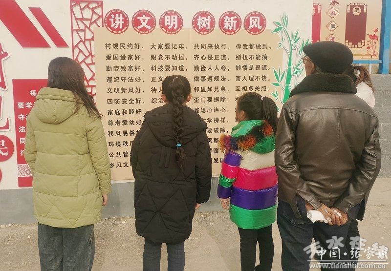 近日,記者走進(jìn)張家川縣龍山鎮(zhèn)蘆塬村,看到一位老人,領(lǐng)著村民和幾個(gè)孩子正在認(rèn)真學(xué)習(xí)宣傳墻上的村規(guī)民約,在該村可以隨處看到“勤儉節(jié)約、杜絕浪費(fèi)”“遵紀(jì)守法、愛崗敬業(yè)”等標(biāo)語更潛移默化地影響著大家。村廣場(chǎng)上幾個(gè)小朋友將零散的碎紙片一一撿起扔進(jìn)垃圾桶,冬日的暖陽灑在村莊的每一個(gè)角落,來去過往的村民笑臉相迎,熱情招呼,與人與事與村,感受皆為溫暖。