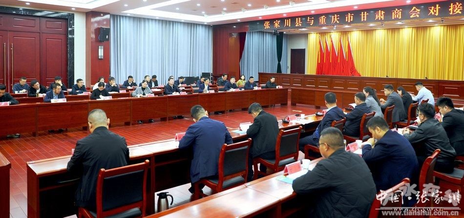 3月28日,重慶金盛世華實(shí)業(yè)有限公司董事長(zhǎng)、重慶市甘肅商會(huì)會(huì)長(zhǎng)崔小剛帶領(lǐng)企業(yè)家考察團(tuán)來(lái)張家川縣考察調(diào)研。天水市招商局副局長(zhǎng)紀(jì)旭主持召開(kāi)張家川縣與重慶甘肅商會(huì)對(duì)接洽談會(huì)?h委書(shū)記張思佳,縣委常委、政法委書(shū)記高文出席對(duì)接洽談會(huì)。