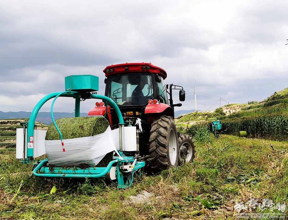 “這幾天,天氣晴好,玉米棒子也剛剛成熟,正是青貯飼草的最佳時機(jī)!备拭C西戡農(nóng)業(yè)發(fā)展有限公司生產(chǎn)部經(jīng)理馬亞西組織大型機(jī)械穿梭田間,經(jīng)過收割、揉絲、打包,一行行玉米變成了一個個滾圓飽滿的飼草包。